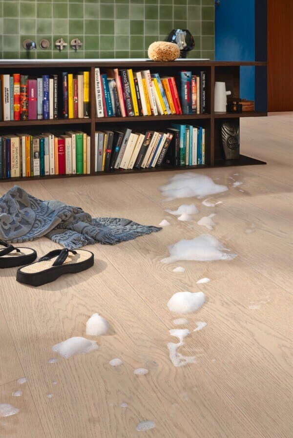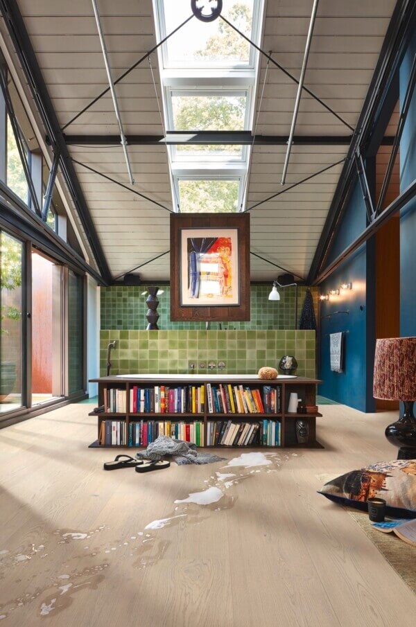 Praktisch comfort staat centraal: deze vloer is geschikt voor vloerverwarming en vloerkoeling, waardoor je het hele jaar door geniet van een aangenaam binnenklimaat. Bovendien is de vloer tot 24 uur waterbestendig, wat extra zekerheid biedt bij dagelijks gebruik in bijvoorbeeld de woonkamer, keuken of hal.